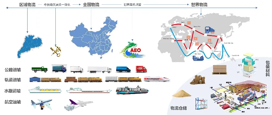 运输工具从原始的超载混战,到标准化的集装箱;货物从散装到简陋的物流包装,再到同载具不同温度的精温箱;各国海关从封闭的通关方式,到全球通用的世界海关联盟体系。
